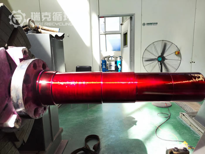 此軸為國(guó)內(nèi)某大型鋼廠進(jìn)口設(shè)備中主要零部件,該件也為進(jìn)口件,因疫情原因從國(guó)外采購(gòu)時(shí)間太長(zhǎng),向社會(huì)尋找能夠滿足條件的供應(yīng)商,我們接到對(duì)方邀請(qǐng)公告,當(dāng)即派總工和業(yè)務(wù)人員前往與工作人員溝通,得知該工件維修對(duì)于技術(shù)要求高、工期短,整天難度特別大,我們現(xiàn)場(chǎng)和工作人員溝通確定工件維修的可行性,與到公司后的詳細(xì)維修方案,現(xiàn)場(chǎng)工作人員向領(lǐng)導(dǎo)請(qǐng)示,當(dāng)場(chǎng)確定由我們維修,到我們公司后,我們先對(duì)軸整體除銹、除油處理,處理完成后緊接著做全身探傷,確保除維修部位外,剩余地方的完整,完成后我們上激光熔覆機(jī)熔覆,完成后進(jìn)行機(jī)加處理,由我們質(zhì)檢按圖紙檢測(cè)尺寸,確保無(wú)誤后,做動(dòng)平衡處理。出具各項(xiàng)檢測(cè)報(bào)告。當(dāng)天連夜送到對(duì)方工廠。期間除去運(yùn)輸時(shí)間,所用時(shí)間3天,完成了連接軸的整體維修修復(fù),現(xiàn)已經(jīng)在設(shè)備上平穩(wěn)運(yùn)行一個(gè)月。