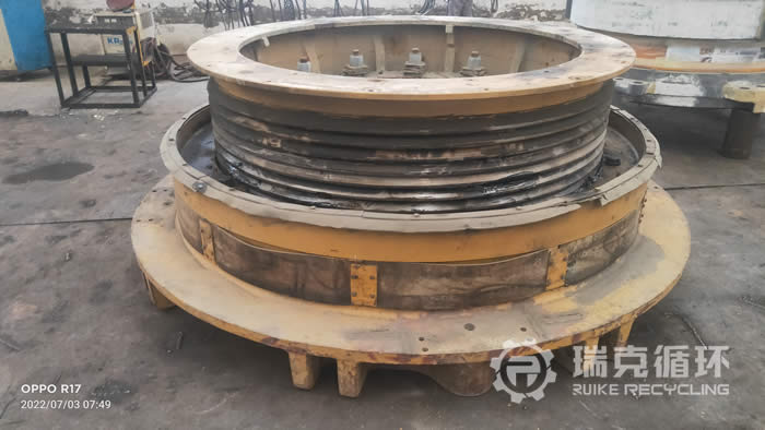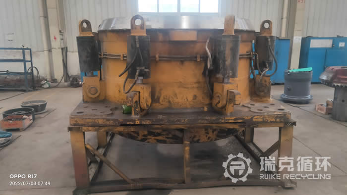 我公司回收河北某礦5臺杰佛郎多缸液壓圓錐破檢修,該批設備屬于主機招標,我們優勢就是主機檢修,成功競標后拉回公司檢修。從外管來看主機基本還算8-9成新,基本無磨損,內部拆開以后保養也很好,對接下來的工作和有利。