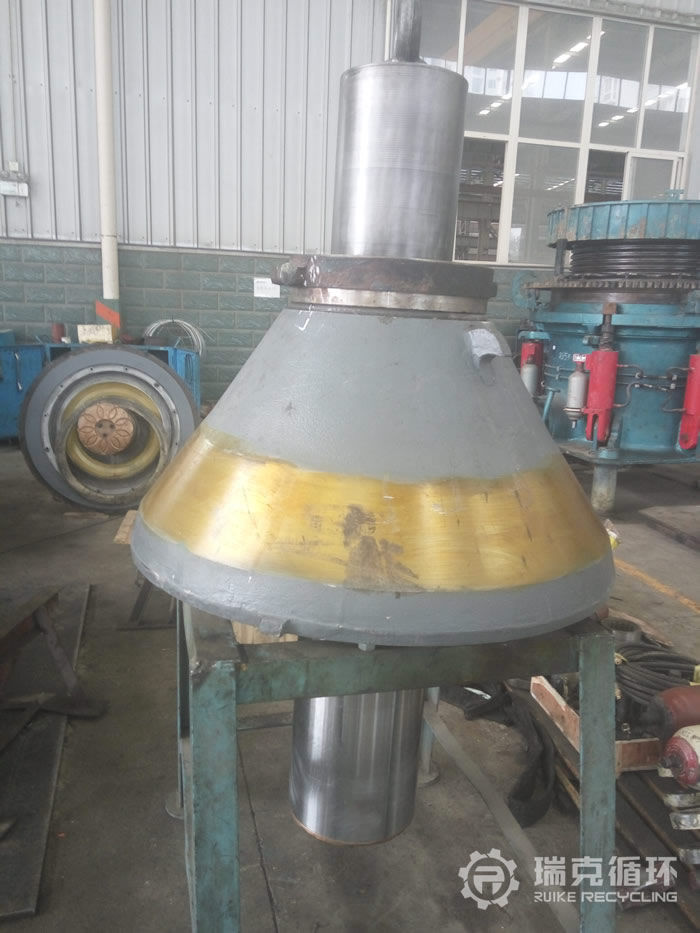 嵩縣某砂場,GP11圓錐破碎機在我公司(洛陽瑞克科技)大修。該臺設(shè)備是用戶半年前在伊川某個體二手設(shè)備商出購買的設(shè)備。在現(xiàn)場使用了不到半年時間,經(jīng)常出問題。就在拉到我公司的前十天,剛在現(xiàn)場換了一套銅套。斷斷續(xù)續(xù)生產(chǎn)了7天左右主機就抱死了。設(shè)備拉到我公司后,拆解開,對零部件檢查測量,對關(guān)鍵零件通過檢測設(shè)備及機床進行檢測、校正。經(jīng)過七天的時間對整機進行了拆解、清洗、檢測、維修、安裝、試機、噴漆。順利交付用戶使用。
